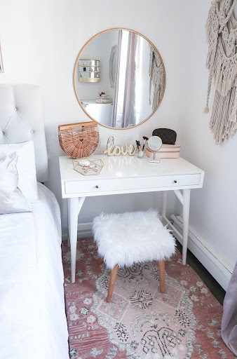 Amazing Bedroom Vanity Ideas To Try Out 03. Ideally you want light coming from both sides of your face so there are no shadows to throw off your blending. Make sure its large enough and situated at the right height for you to use when seated at your vanity.